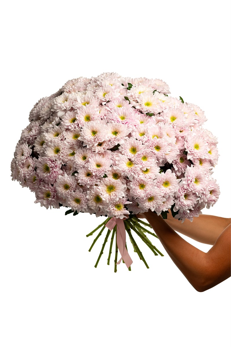 Букет из 25 нежно-розовых хризантем с лентой