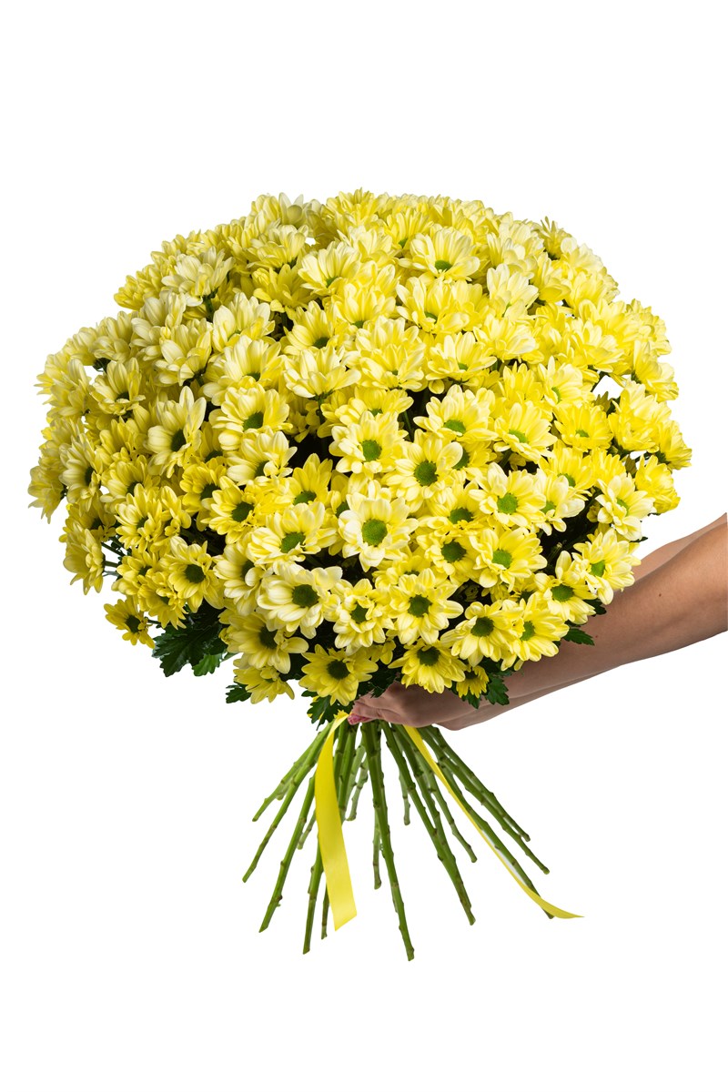 Букет из 25 желтых кустовых хризантем (Просекко) с лентой.