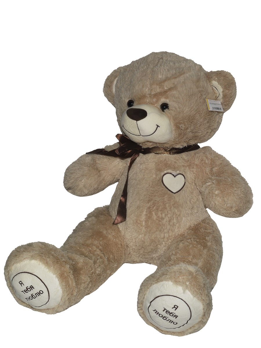 Мягкая игрушка большой бежевый медведь с коричневым бантиком