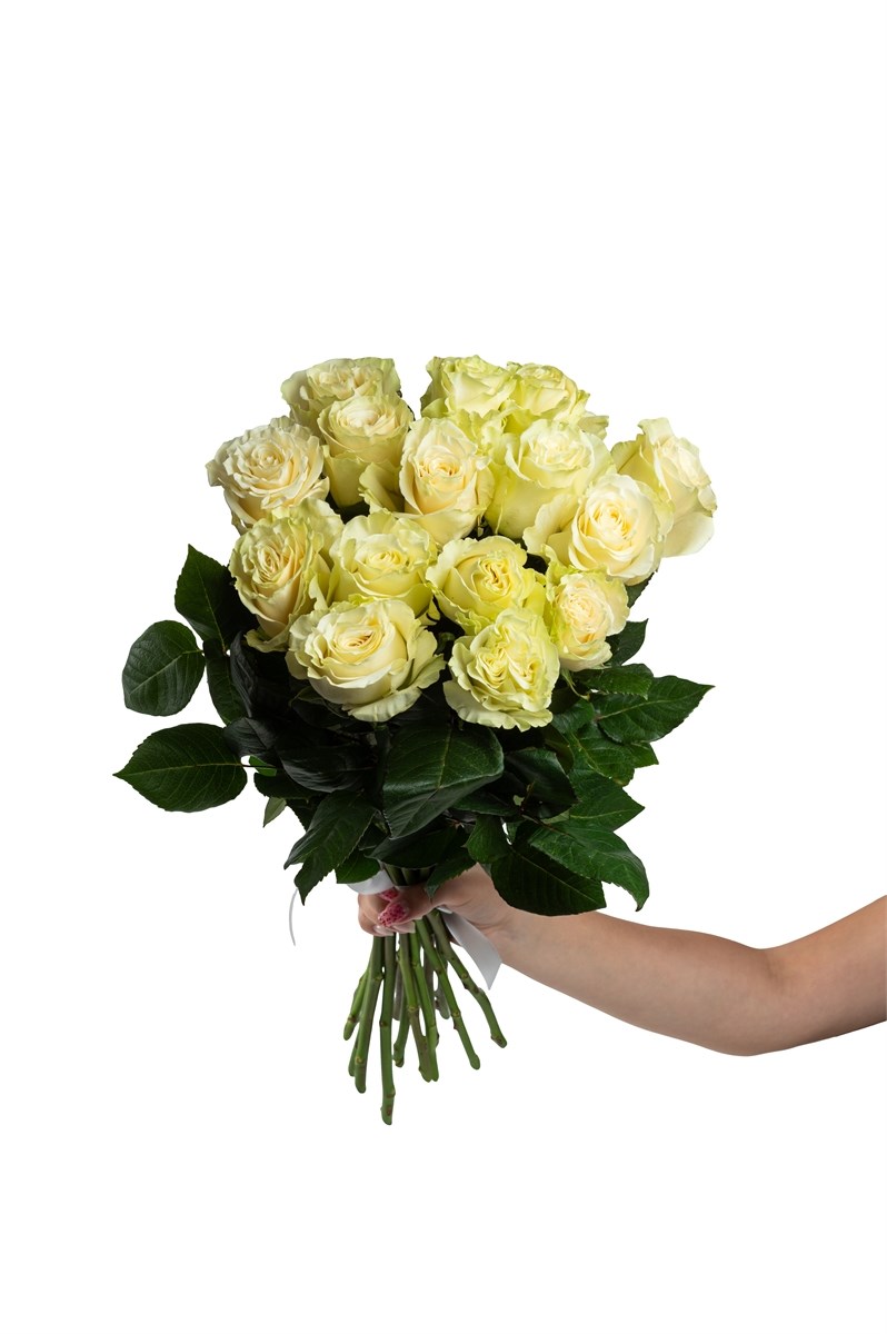 Букет из 15 белых роз (Эквадор) 50 см "Мондиаль" с лентой